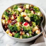 Freezing is not recommended for Loaded Broccoli Salad Recipe as the fresh ingredients, especially the broccoli, apples, and dressing, won’t hold up well and can become watery or mushy.