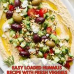 This Loaded Hummus Recipe is a vibrant and flavorful Mediterranean-inspired dish perfect for gatherings or a healthy snack. Creamy hummus is beautifully topped with fresh cucumbers, juicy cherry tomatoes, olives, tangy feta, crunchy pine nuts, and aromatic herbs, all drizzled with extra virgin olive oil and a hint of sumac for a zesty finish.