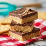 Lunch Lady Peanut Butter Bars are a no-bake, easy-to-make treat featuring a buttery, peanut butter and graham cracker crumb base topped with a smooth layer of melted semi-sweet chocolate. Perfect for an effortless dessert or snack that requires minimal prep and no oven time.