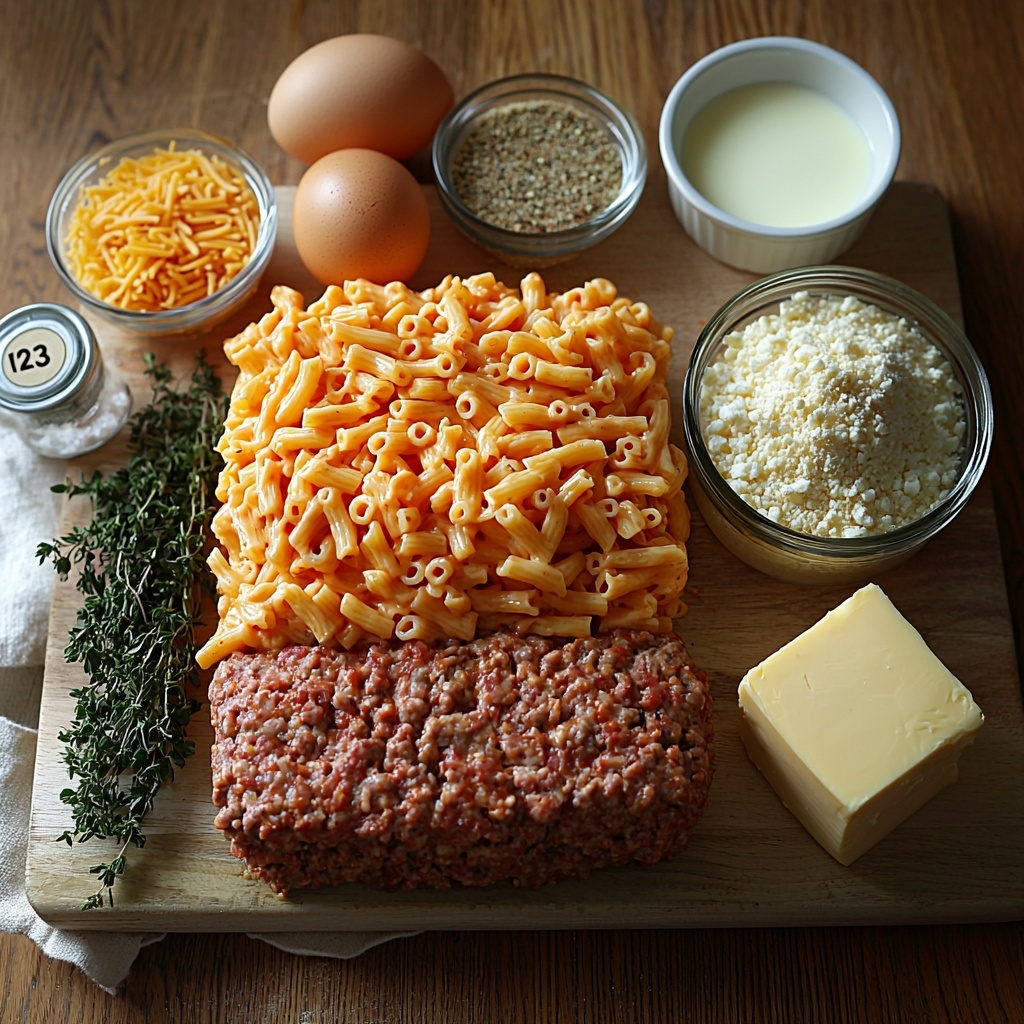 Gathering simple, wholesome ingredients is key to creating the perfect balance of flavors and textures in this recipe. Each component plays an essential role, from the tender ground beef bringing savory depth, to the creamy cheddar cheese offering that signature mac and cheese richness and beautiful golden color on top.