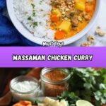 This Massaman Chicken Curry recipe is a rich and flavorful Thai-inspired dish featuring tender chicken thighs simmered in creamy coconut milk with warm spices, potatoes, carrots, and a hint of peanut butter. Perfect served over basmati rice and garnished with fresh cilantro and crunchy peanuts, this meal combines a harmonious blend of savory, sweet, and tangy notes for a comforting dinner.