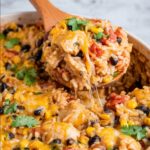 When the rice and chicken are perfectly cooked, sprinkle 1/2 to 1 cup of shredded cheese into the skillet. Top it off with a little extra cheese to your liking, then cover again for a couple of minutes. This step melts the cheese into a creamy, irresistible blanket that perfectly finishes off this Mexican Chicken and Rice Skillet Recipe.