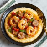 - Serve: Spoon the creamy cheese grits onto plates, top each serving with the shrimp and sausage mixture, and serve immediately while hot.