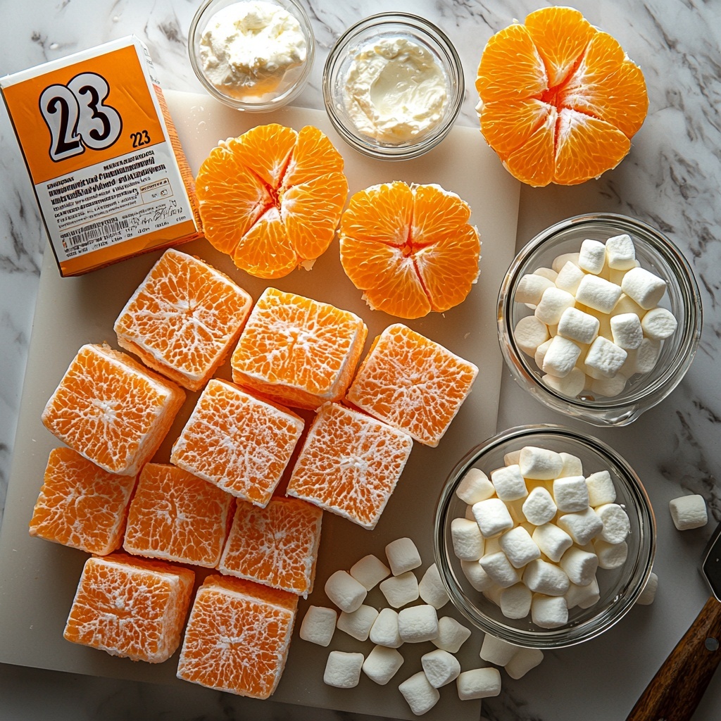 This Orange Creamsicle Fluff Salad Recipe shines because of its simple yet essential ingredients. Each component plays a starring role in delivering a balance of texture, sweetness, and vibrant color that makes this dish so irresistible.