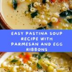 A comforting and simple Pastina Soup made with tiny star pasta, chicken or vegetable broth, and enriched with egg ribbons and Parmesan cheese for added flavor and creaminess. Perfect for a quick, nourishing meal.