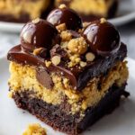 A sprinkle of extra chopped peanut butter cups on top adds crunch and visual appeal, making every serving a feast for the eyes and taste buds. Lightly dusted cocoa powder or a drizzle of chocolate sauce could also elevate each slice to next-level decadence.