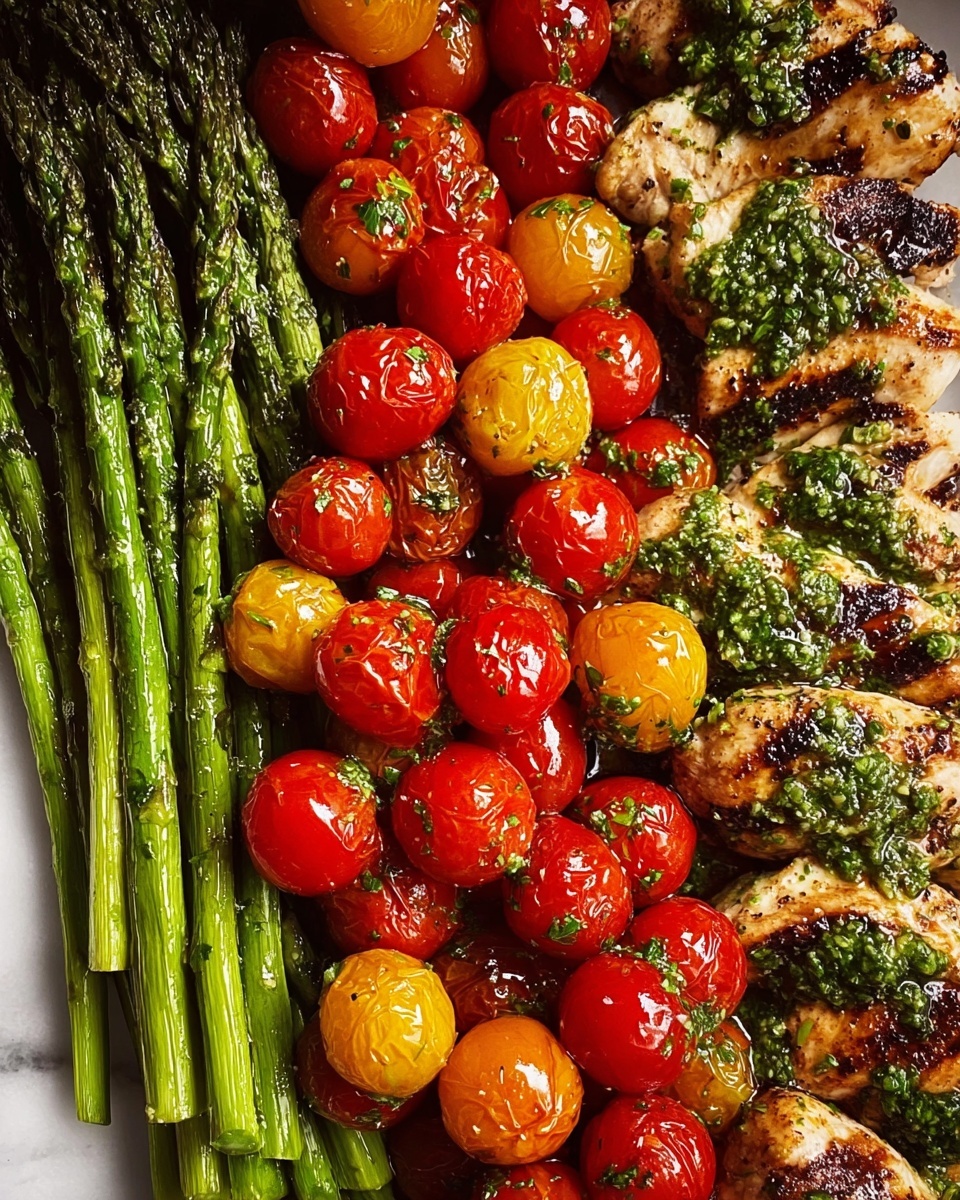 This vibrant Pesto Chicken Tortellini and Veggies recipe combines tender chicken thighs, fresh asparagus, cherry tomatoes, and cheesy tortellini, all tossed in fragrant basil pesto for a colorful, flavorful, and satisfying meal perfect for weeknight dinners.