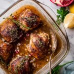 This Pomegranate Lemon Roasted Chicken is a vibrant and flavorful dish featuring tender chicken thighs roasted with a tangy blend of lemon and pomegranate juices, fresh herbs, and garlic. The sweet and tart pomegranate arils add a burst of color and texture, making it a perfect main course for a delicious and visually appealing dinner.