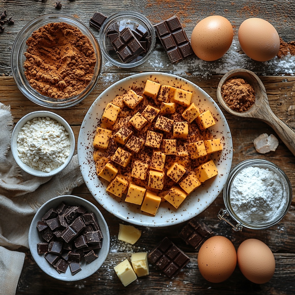 Start by whisking together the flour, baking powder, baking soda, salt, and all the spices in a bowl to evenly distribute those delightful autumn flavors. In a separate bowl, beat the eggs with the granulated sugar until they turn pale and fluffy—this ensures your sponge will have that perfect lightness. Gently fold in the pumpkin puree, then gradually add the dry ingredients along with the mini chocolate chips. The batter should be smooth and beautifully speckled with chocolate chips, a hint of the luxury to come.