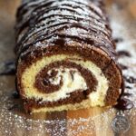 - Fill and roll the cake: Unroll the cooled cake carefully. Spread the chocolate cream cheese filling evenly over the surface. Re-roll the cake without the towel, sealing the edge. Wrap the cake in plastic wrap and refrigerate for at least 1 hour to set.