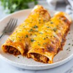 These rotisserie chicken enchiladas with corn tortillas offer a flavorful and satisfying meal featuring a homemade enchilada sauce made from chili powder and spices, tender shredded chicken, and melted cheddar cheese, all baked to perfection and served with fresh garnishes.