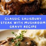 A classic Salisbury Steak recipe featuring juicy ground beef patties simmered in a rich and savory mushroom gravy, perfect served over mashed potatoes, rice, or buttered noodles for a comforting meal.