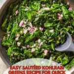 This sautéed kohlrabi greens recipe is a delicious and healthy way to use the often overlooked greens from kohlrabi bulbs. Tender kohlrabi stems and vibrant greens are sautéed with garlic, onion, olive oil, and butter, then finished with a splash of fresh lemon juice for a bright, flavorful side dish that pairs well with a variety of meals.
