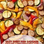 A quick and easy Sheet Pan Sausage Dinner featuring sliced sausage, colorful bell peppers, zucchini, and red onion, all seasoned with a blend of paprika, garlic, and onion powders. This one-pan meal is baked to perfection at 400°F, making it a convenient and flavorful weeknight dinner option.