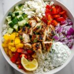 This Simple Greek Chicken Bowl recipe offers a vibrant and nutritious meal featuring marinated grilled chicken, fresh vegetables, fluffy rice or quinoa, and tangy feta cheese. It’s perfect for a quick weeknight dinner or meal prep, delivering authentic Greek flavors with minimal effort.