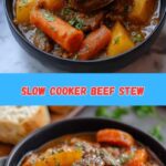 This Slow Cooker Beef Stew features tender chunks of seared chuck roast, slow-cooked with carrots, potatoes, and aromatic herbs in a rich beef and red wine broth. Ideal for a comforting, hearty meal, this recipe allows the flavors to meld beautifully during a long, low-temperature cook in a slow cooker, resulting in a thick, flavorful stew perfect for colder days or whenever you crave a classic and satisfying dish.