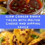This Slow Cooker Birria Tacos recipe features tender, flavorful beef chuck roast slow-cooked with a rich blend of dried chilies, spices, and tomatoes, then shredded and served in crispy, cheesy tortillas. The dish includes a homemade birria sauce for dipping, making it a delicious and authentic Mexican comfort food perfect for gatherings or a satisfying meal.