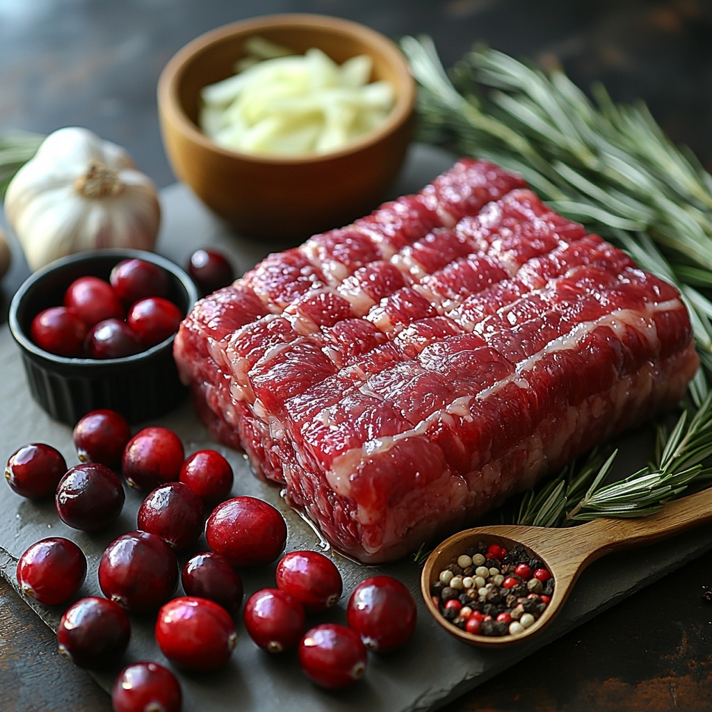 - 1 ½ cups fresh or frozen cranberries: They add a vibrant tartness and beautiful ruby color that perfectly complements the savory meat.