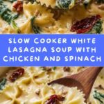 This Slow Cooker White Lasagna Soup is a comforting and hearty dish that combines tender shredded chicken, fresh spinach, sun-dried tomatoes, and broken lasagna noodles in a creamy Italian-seasoned broth. Perfect for a cozy meal, this soup requires minimal hands-on time and is packed with flavor, topped off with Parmesan cheese and fresh parsley for a delicious finish.