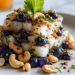 The Spicy Blueberry Jicama Salad with Cashews Recipe is a vibrant celebration of textures and flavors that will excite your taste buds with every crunchy bite. Crisp jicama matchsticks form the refreshing base, while juicy blueberries add bursts of natural sweetness, perfectly balanced by the warmth of smoky spices and the satisfying crunch of toasted cashews. This salad is a fantastic way to enjoy a spicy, tangy, and sweet combination that’s as colorful as it is delicious, making it an irresistible dish to share with friends and family.