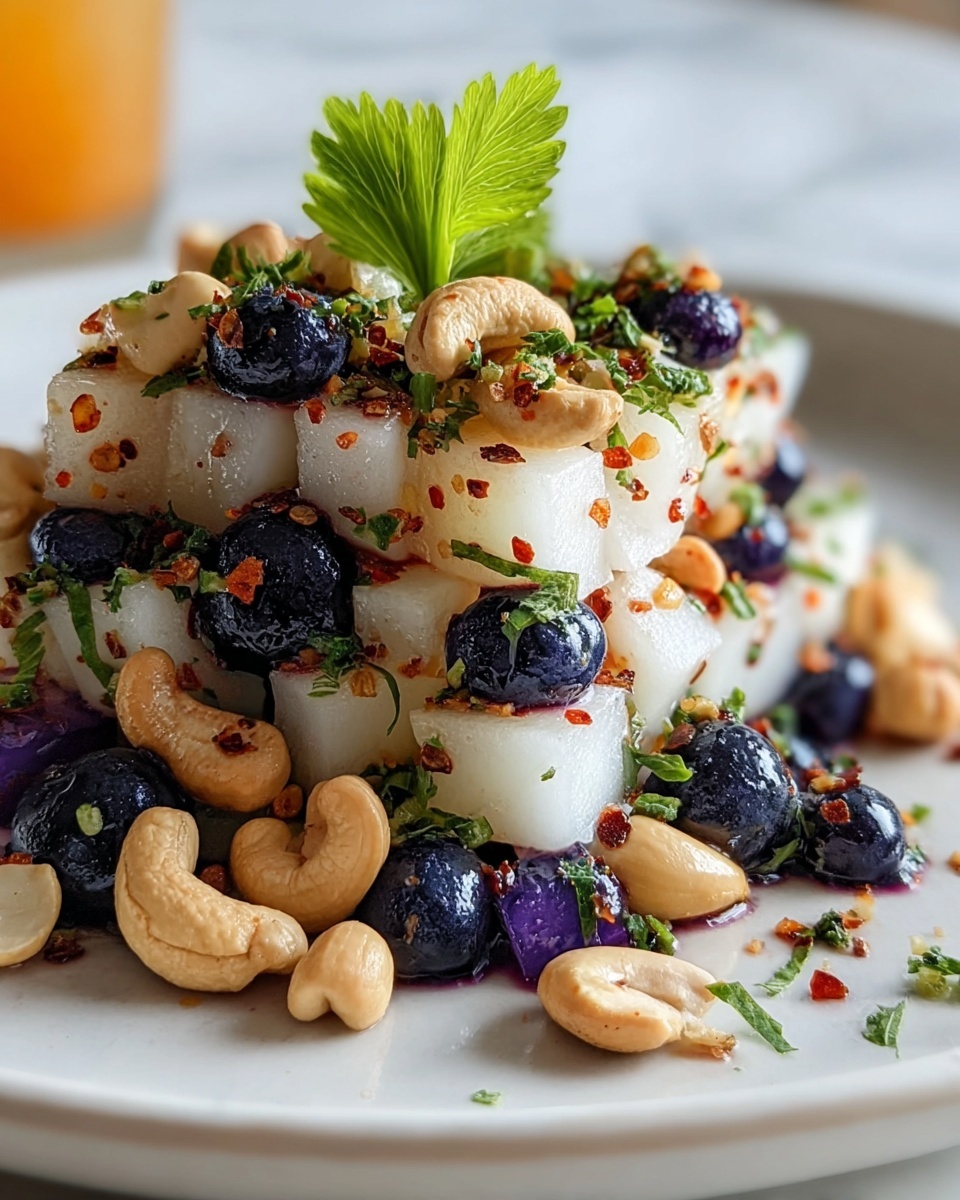 Give the Spicy Blueberry Jicama Salad with Cashews Recipe a try, and you’ll discover a refreshing, flavor-packed dish that’s perfect for any occasion. Whether you’re looking for a quick snack with a kick or a stunning side salad to wow your guests, this recipe delivers every time with its bright colors, dynamic textures, and irresistible spicy-sweet combination. I promise it will become one of your favorite go-to salads in no time!