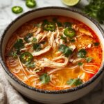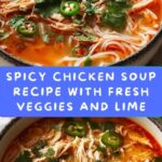 This Spicy Chicken Soup is a flavorful and comforting dish packed with tender chicken, sautƩed vegetables, and a kick of heat from jalapeƱos and chili powder. Perfect for warming up on chilly days, it combines aromatic spices with fresh lime and cilantro for a vibrant finish.