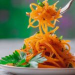 This Spicy Korean Carrots recipe is a vibrant, flavorful salad featuring julienned carrots tossed in a zesty blend of white vinegar, smoked paprika, garlic, and a touch of cayenne pepper. Enhanced by the infusion of hot olive oil and sautéed onions, this no-cook dish offers a perfect balance of spice, tang, and smoky depth. Ideal as a refreshing side or snack, it captures the essence of Korean-inspired flavors with easy preparation and a satisfying crunch.