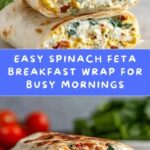 A delicious and healthy Mediterranean-inspired Spinach Feta Breakfast Wrap featuring scrambled eggs with fresh spinach and tangy feta cheese, wrapped in whole wheat tortillas. Perfect for a quick, nutritious breakfast or a meal on the go.