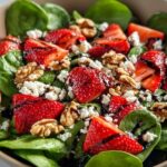 A fresh and vibrant Spinach Strawberry Salad featuring baby spinach, sweet strawberries, tangy red onion, creamy feta or goat cheese, crunchy toasted nuts, and optional dried cranberries, all tossed in a homemade balsamic poppy seed dressing. Perfect as a light meal or a colorful side that pairs wonderfully with grilled proteins.