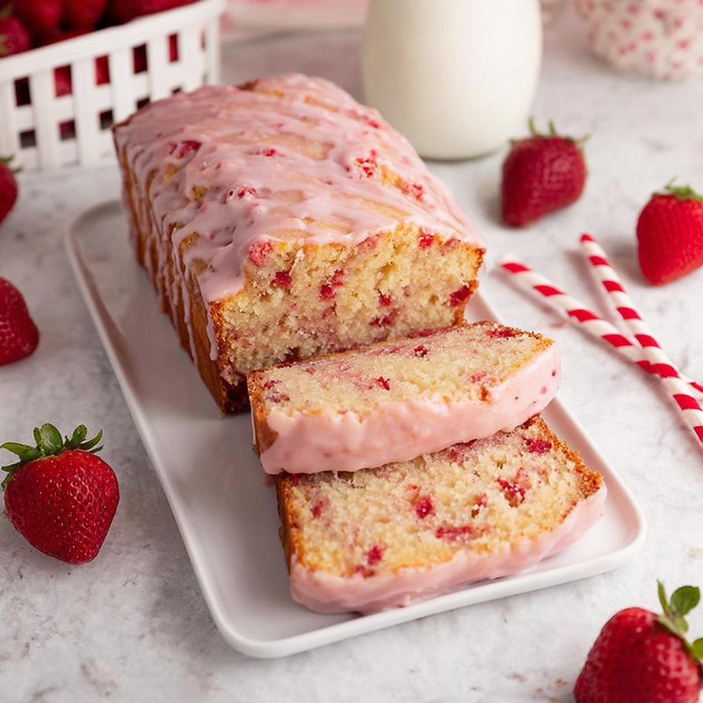 A moist and flavorful strawberry bread with a sweet strawberry glaze, perfect for breakfast or a snack. This quick bread combines fresh chopped strawberries with a tender crumb, enhanced by a vanilla touch and softened butter, finished with a luscious powdered sugar glaze studded with bits of strawberry.