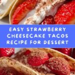 Delight in these irresistible Strawberry Cheesecake Tacos featuring crispy cinnamon-sugar coated tortillas filled with a smooth, creamy cheesecake mixture and topped with fresh, juicy strawberries. A perfect blend of crunchy, sweet, and tangy flavors makes this dessert a crowd-pleaser ideal for any occasion.