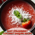 A fresh strawberry and a lime wedge are classic garnish choices that bring color, aroma, and an inviting look to your Strawberry Coconut Daiquiri Recipe. You can also consider a small sprig of mint or toasted coconut flakes on the rim for an extra tropical touch.