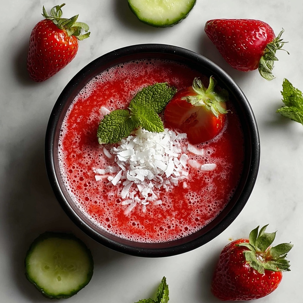 A refreshing Strawberry Coconut Daiquiri that combines the tropical flavors of coconut cream and fresh strawberry puree with a zesty lime twist and smooth white rum, shaken over ice and garnished to perfection.