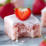 These Strawberry Brownies are a delightful twist on traditional brownies, using strawberry cake mix for a fruity, moist base topped with a tangy lemon glaze. Perfectly sweet and with a fresh strawberry flavor, they make an easy, crowd-pleasing dessert for any occasion.