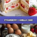A delightful Strawberry Vanilla Cake featuring a moist vanilla-flavored batter studded with fresh strawberries, baked to perfection for a sweet and fruity dessert ideal for gatherings or special occasions.