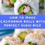 This Sushi Rice and California Rolls recipe teaches you how to make the perfect sushi rice and assemble classic California rolls at home. With tender imitation crab, creamy avocado, crunchy cucumber, and toasted nori, it’s a delicious and approachable sushi experience perfect for beginners and sushi lovers alike.