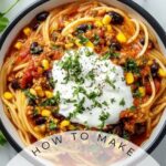 Topping your Taco Spaghetti Recipe with sour cream and sliced green onions adds contrast in both flavor and texture. The creamy sour cream cools down the heat, while fresh green onions provide a crisp and vibrant finish that brings the dish to life.