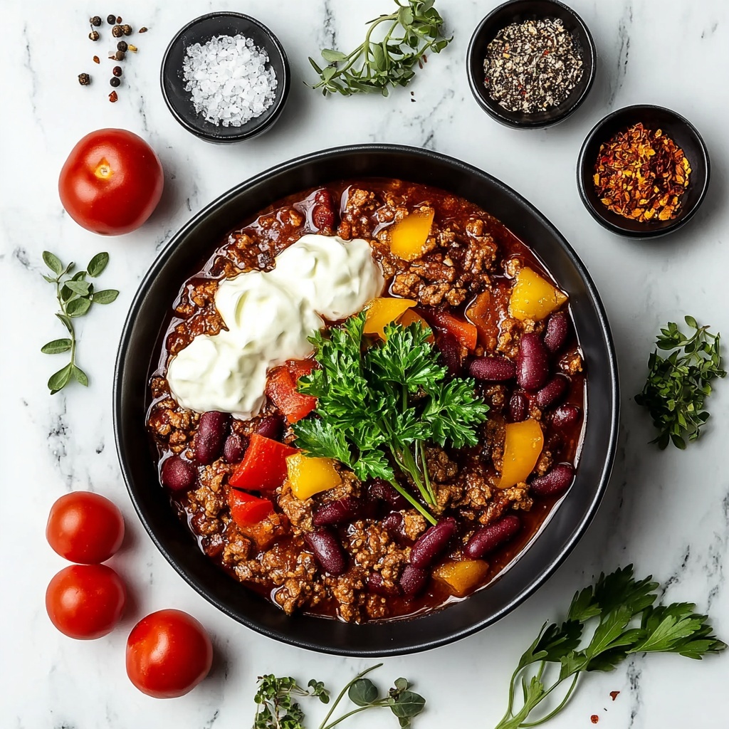This Texas Style Chili is a hearty, flavorful dish featuring ground beef simmered with a robust blend of spices, tomatoes, and optional beans. Perfect for a comforting meal, it showcases the traditional spicy and smoky flavors of Texas chili made from scratch on the stovetop.