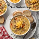 A hearty and creamy cheeseburger soup that combines ground beef, potatoes, vegetables, and melted cheddar cheese for a comforting meal perfect for any day.