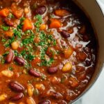 This hearty vegetarian bean chili is a flavorful and nutritious meal perfect for a cozy dinner. Packed with three types of beans, fresh vegetables, and aromatic spices, it delivers a satisfying and smoky taste without any meat. Ideal for those seeking a wholesome plant-based dish that’s easy to prepare and customizable with optional veggies or heat levels.