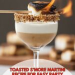 A decadent and visually stunning Toasted S’more Martini that layers rich chocolate liqueur, marshmallow vodka, and creamy heavy cream with a graham cracker rim, topped with a toasted marshmallow skewer for a fun and indulgent dessert cocktail experience.