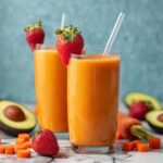 A refreshing and nutritious Coconut Water Smoothie made with avocado, baby carrots, frozen strawberries, and frozen mango. This vibrant smoothie is perfect for a quick, hydrating breakfast or snack, combining creamy texture and natural sweetness with the health benefits of fresh fruits and veggies.