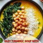 This vibrant and nourishing turmeric soup combines wholesome chickpeas, tender orzo pasta, and fresh spinach simmered in a fragrant broth enriched with a blend of warming spices including turmeric, cumin, coriander, and cinnamon. Perfect as a comforting yet healthy meal, this soup is easy to prepare and packed with antioxidant-rich ingredients and plant-based protein.