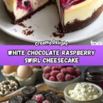 This Irresistible White Chocolate Raspberry Swirl Cheesecake combines the rich, creamy goodness of white chocolate and cream cheese with the tart brightness of raspberry swirls atop a crunchy Oreo cookie crust. Perfectly balanced in sweetness and texture, this dessert is a showstopper for celebrations or anytime indulgence.