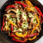 This Zesty One-Pan Philly Cheesesteak Dinner is a delicious and easy-to-make meal featuring tender beef sirloin, sautéed bell peppers, onions, and garlic, all melted together with gooey provolone or mozzarella cheese. Infused with Italian seasoning and customizable heat from jalapeños and hot sauce, it’s a perfectly balanced dish ideal for a quick weeknight dinner that yields 4 servings.